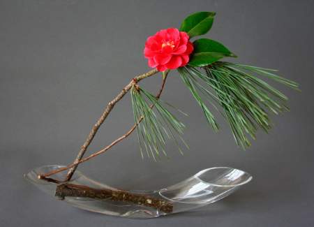 Many ikebana arrangements mix and match tall tree branches and much smaller flowers with no perfectly vertical or horizontal lines, plenty of space in between and, if a low dish is used, the water often in view.