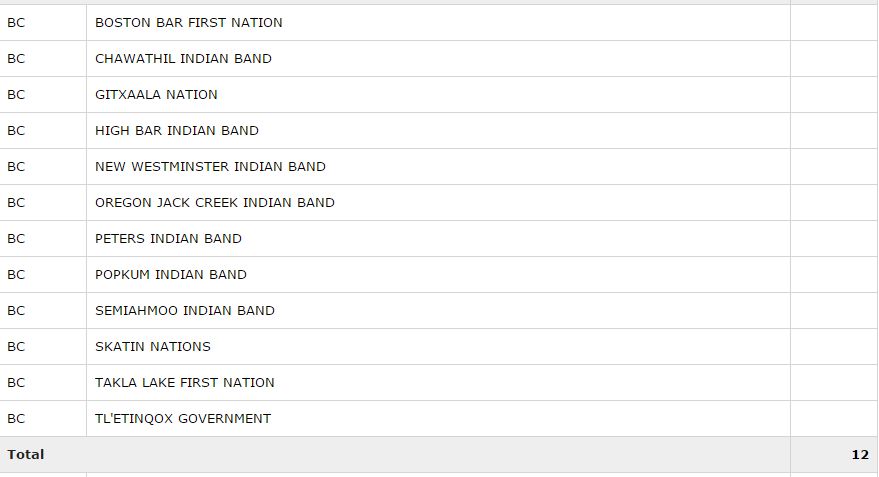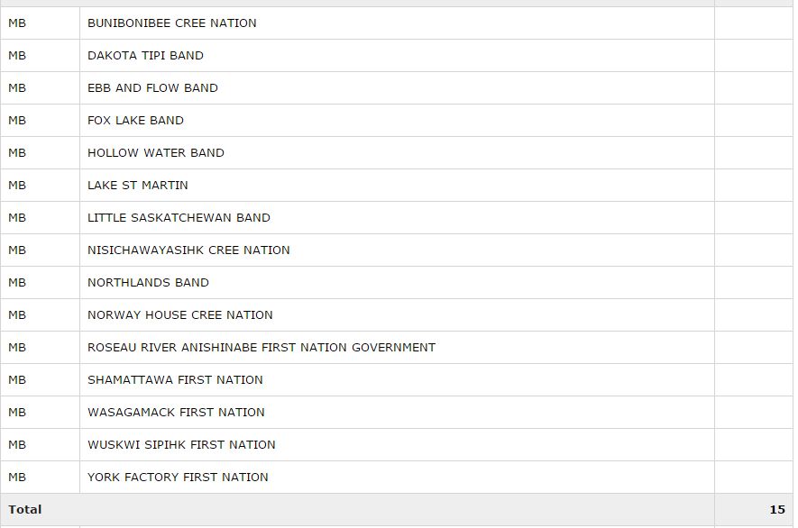A total of 52 First Nations did not comply, including 15 from Manitoba, 12 from B.C., 12 from Ontario, and nine from Saskatchewan.
