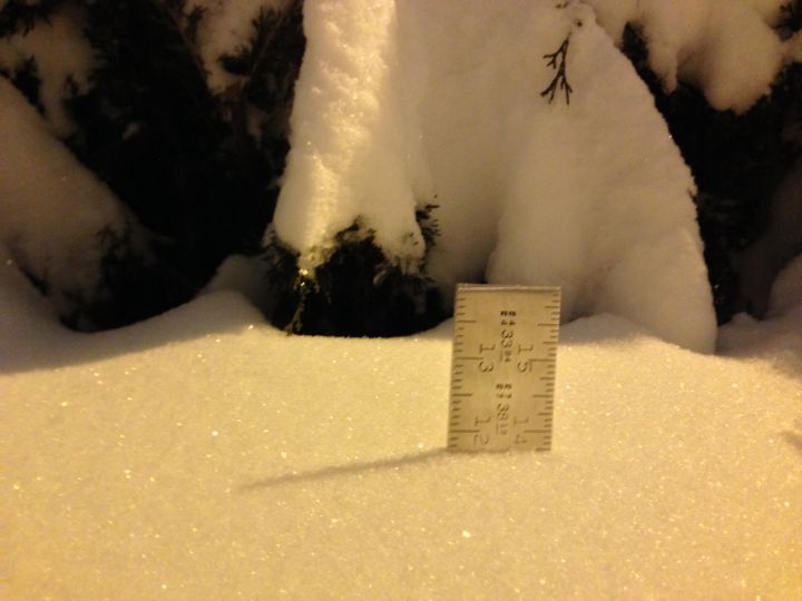 At 8:03 p.m., there was about 34.9 cm of snow (last picture in the gallery below).