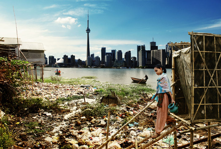 TORONTO – Photoshopped images of Ottawa, Vancouver, Toronto and Calgary without clean water and proper sanitation facilities highlight a global crisis.