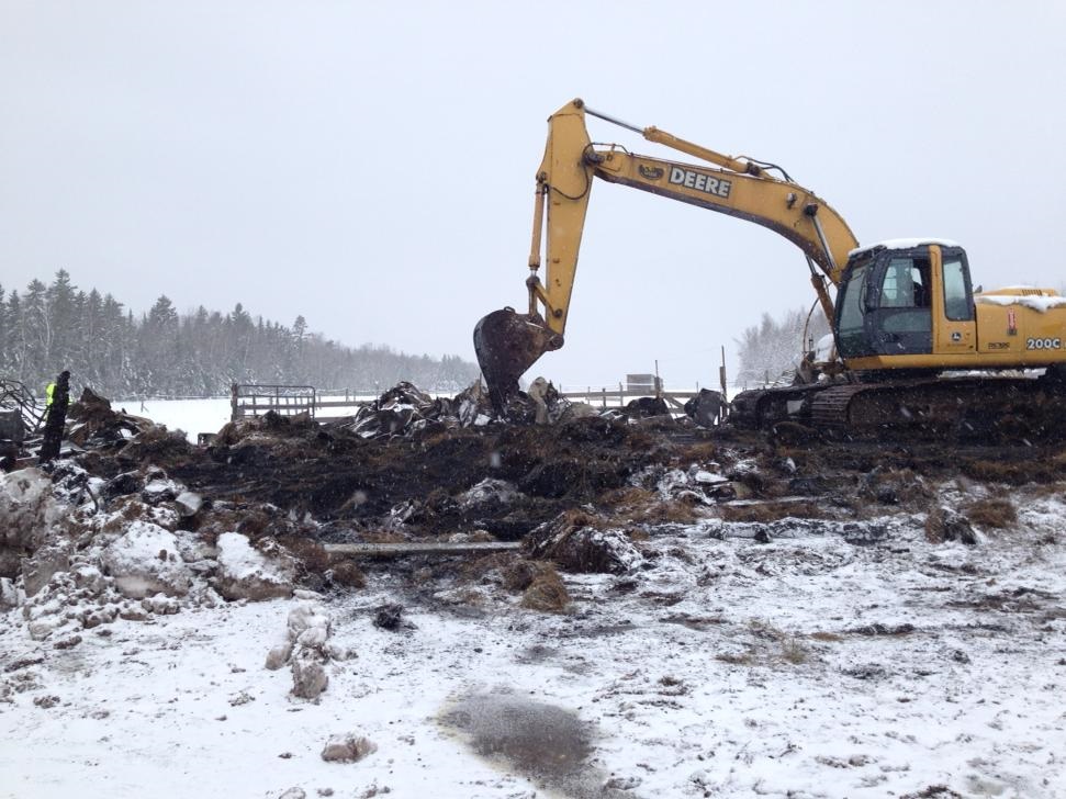 A backhoe helped the family dig through the rubble on Friday. They carefully removed the remains of all the animals and buried them. Three of the horses were boarders.