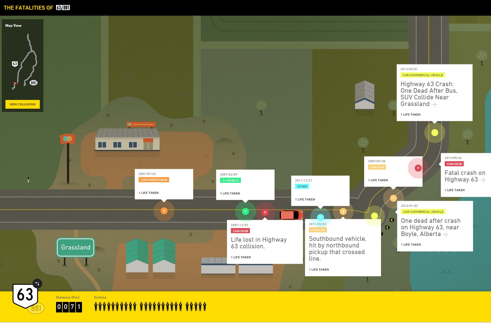 EDMONTON – It’s an interactive map of two highways in northern Alberta that emphasizes just how deadly those roads are.
