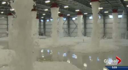 The entire 28,000 square foot floor of the new Carson Air hanger was blanketed about a metre deep in foam in just over a minute.