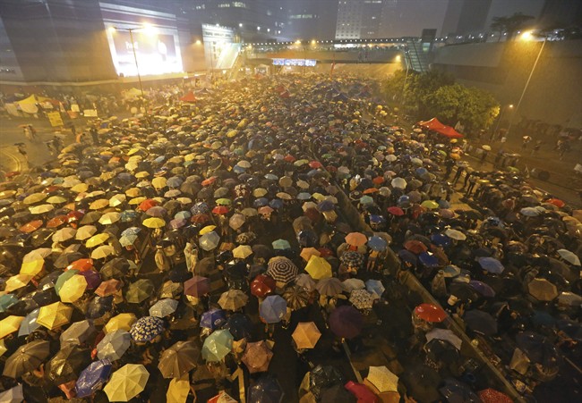 Two student groups that have played key roles in organizing the protests called for supporters to join them at the site before midnight, when police were rumoured to be planning to seal off the area. Police, however, denied there was any such plan and said they would move in at 9 a.m. Thursday.