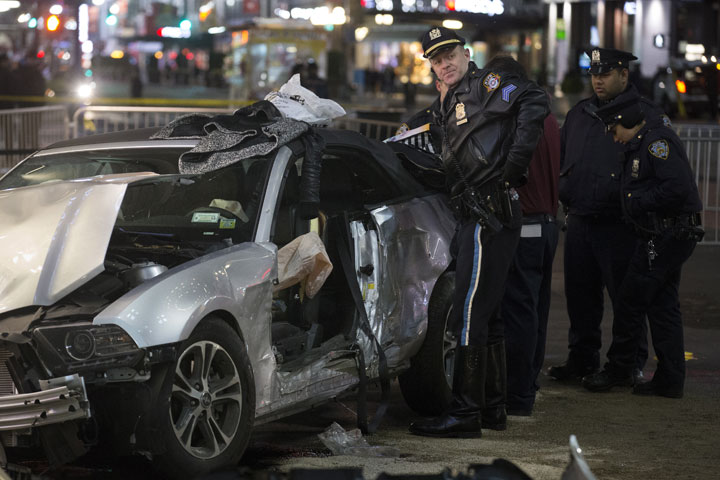 NEW YORK – Police say a car jumped a curb in the Herald Square shopping district in midtown Manhattan, injuring seven people, including five pedestrians.
