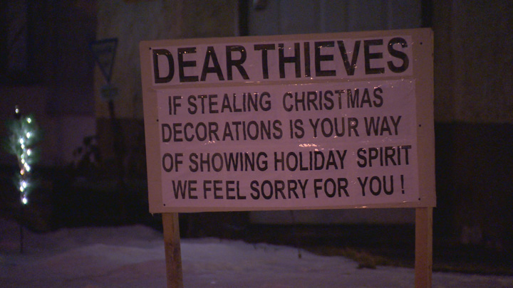 “One reason for the sign is just to kind of say to the thieves out there, c’mon let’s get real, its Christmas why are you stealing?” Dayman said.