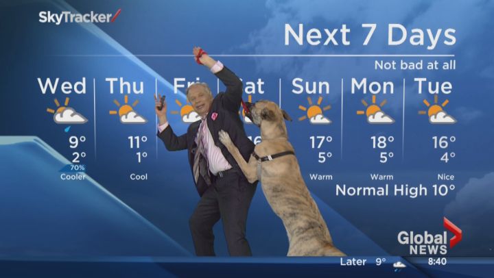 That may, or may not, have been the case for Global Edmonton Weather Specialist Mike Sobel. During a Morning News forecast in October, four-legged Ripple decided he couldn’t wait for his adoption segment and it was time to play with Sobel.