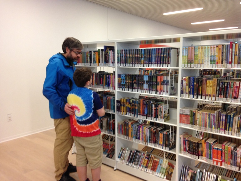 Many people took the time to peruse the stacks and check out book titles but 10-year-old Kyle Smith already had a pile of books under his arm a few minutes after the grand opening.