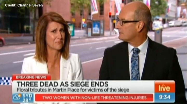 TORONTO – Delivering the news on live TV of a 16-hour hostage standoff in a Sydney Lindt Chocolat Café was an especially emotional task for 7News anchor Natalie Barr, who appeared to learn that she knew one of the victims as she spoke the words on air.