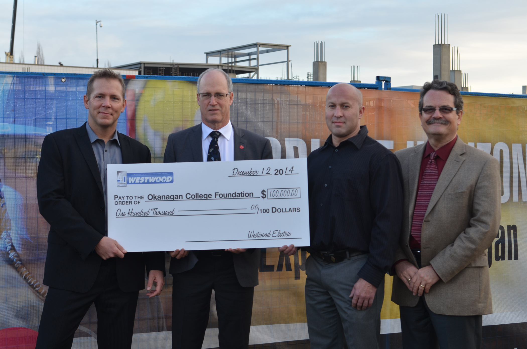 Westwood Electric has donated $100,000 to help support the new Trades Training Complex under construction at the Kelowna campus.