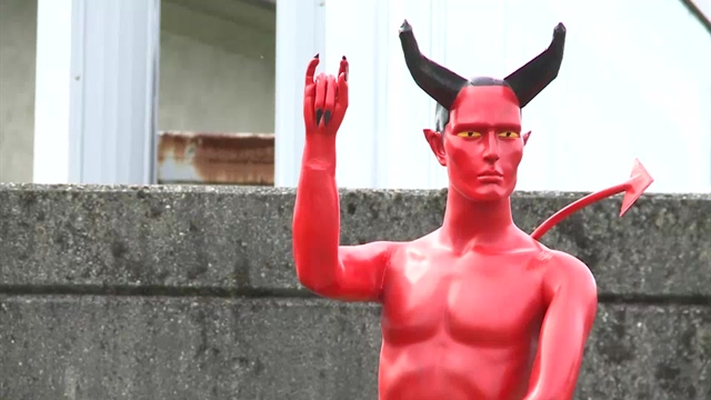 This may be the strangest video posted this year. A statue of Satan was erected alongside a busy Vancouver roadway in September.
