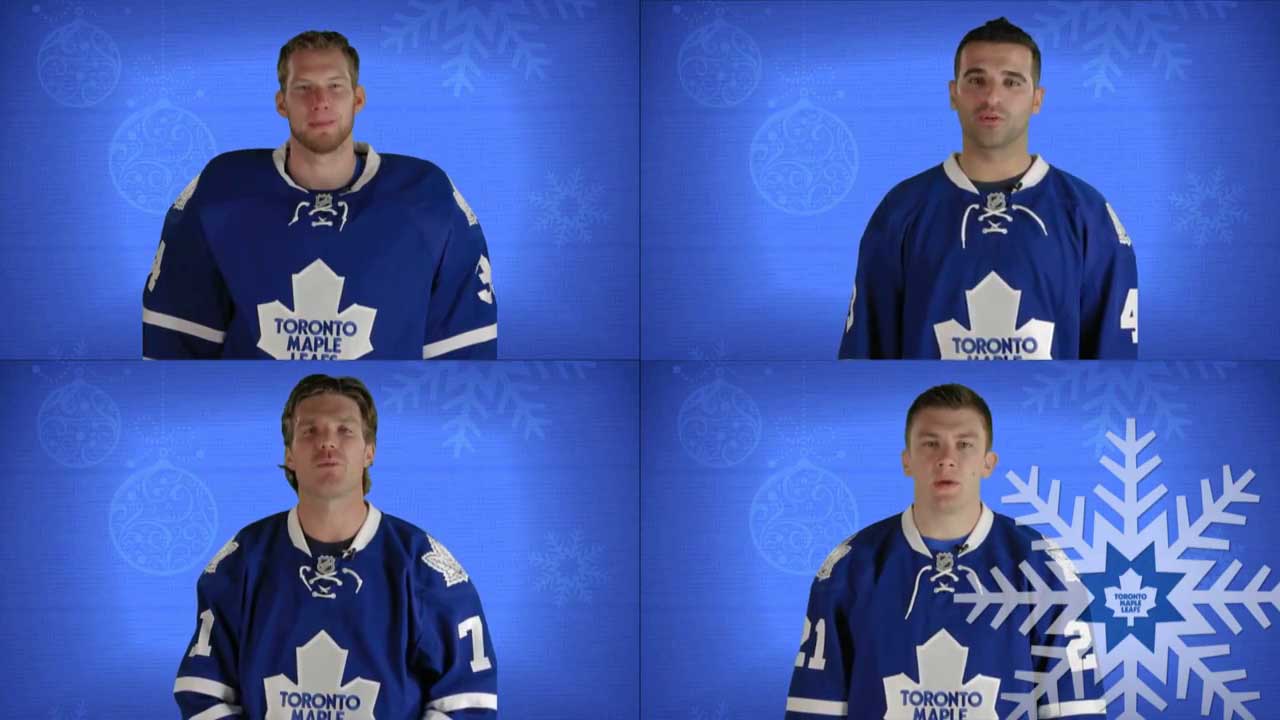 The sweet, dulcet tones of Dion Phaneuf kicked off the rockin’ holiday jam. The hockey club’s captain was followed by Leo Komarov, Joffrey Lupul, Nazem Kadri, James Reimer and more.