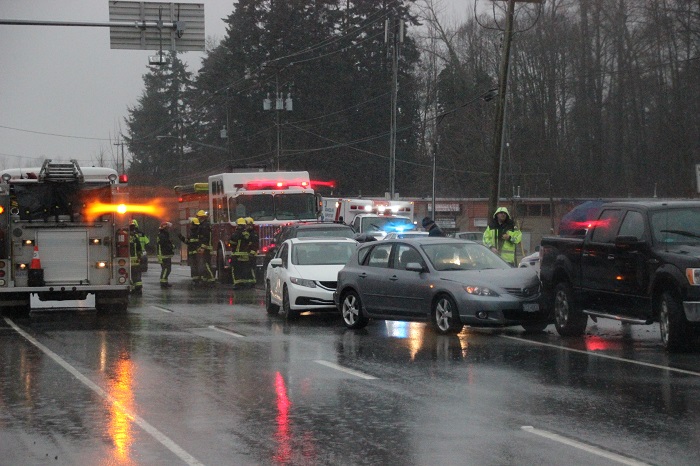 According to the BC Ambulance Service, three people were injured in the crash. One person is in critical condition and taken to Royal Columbian Hospital; one person was taken to Langley Memorial and another person was treated at the scene.