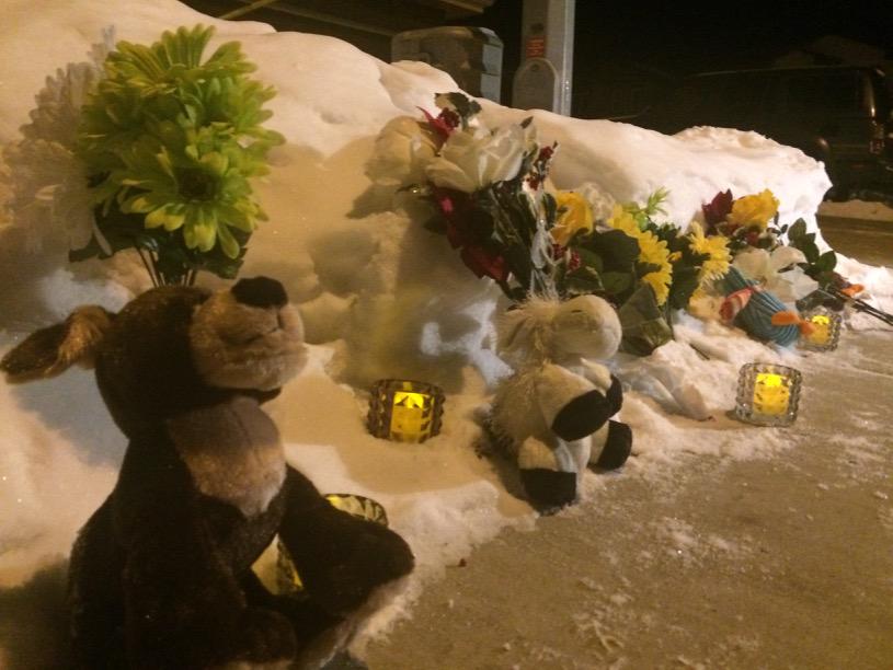 Adults and children stopped by the scene Tuesday night to lay flowers, candles and a teddy bear in front of the the north Edmonton home.