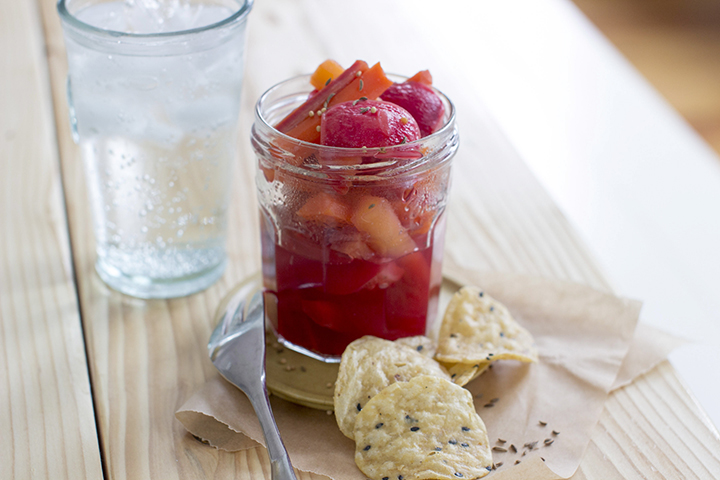 One of my favourite ways is to turn the vegetables into a quick pickle. Turns out that bathing them in a salty-tangy-sweet brine can radically up their appeal. The best part is that these veggies are fast and simple to prepare, and it’s easy to double or triple the recipe to make sure you have ample healthy munchies on hand.