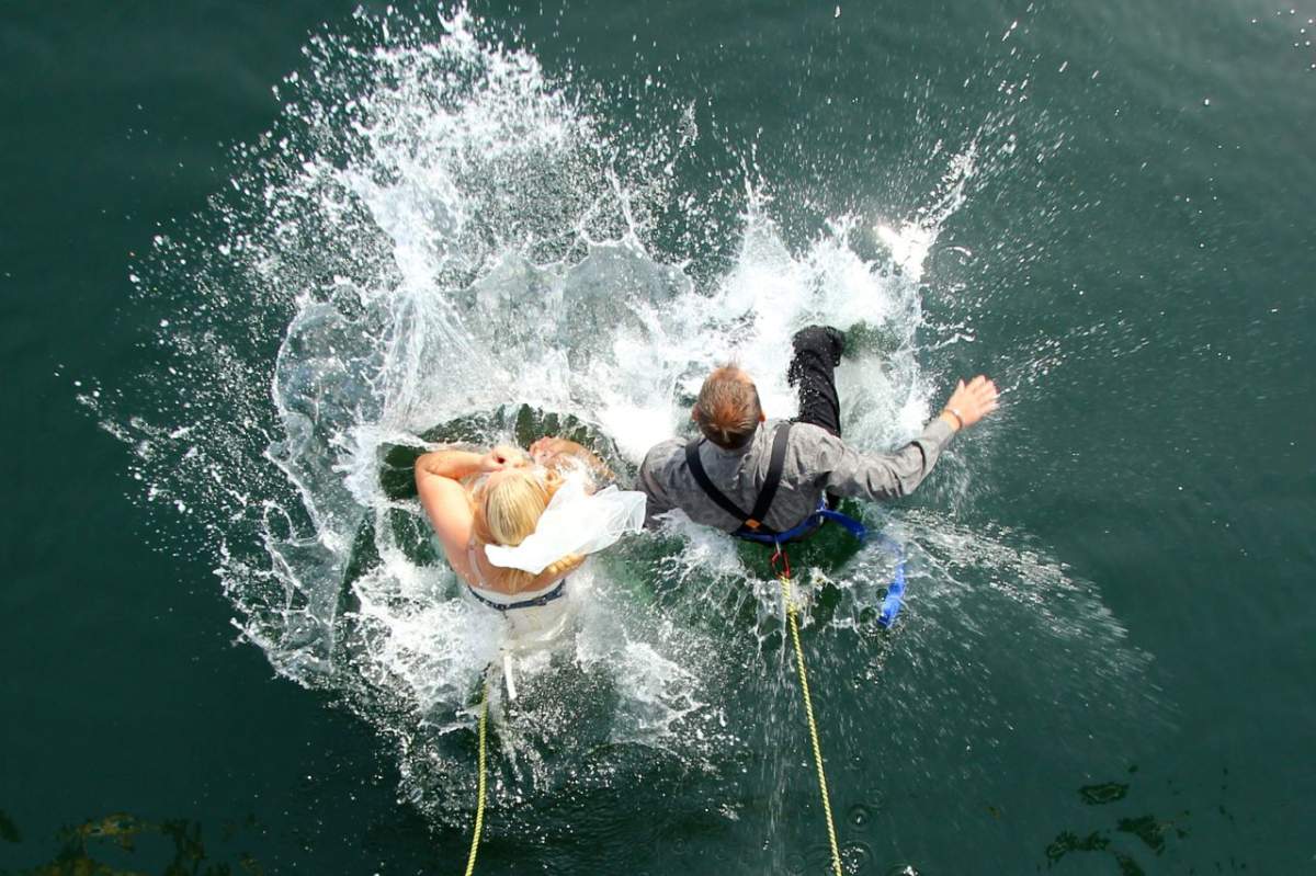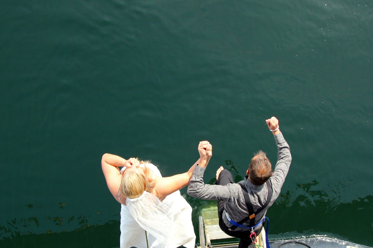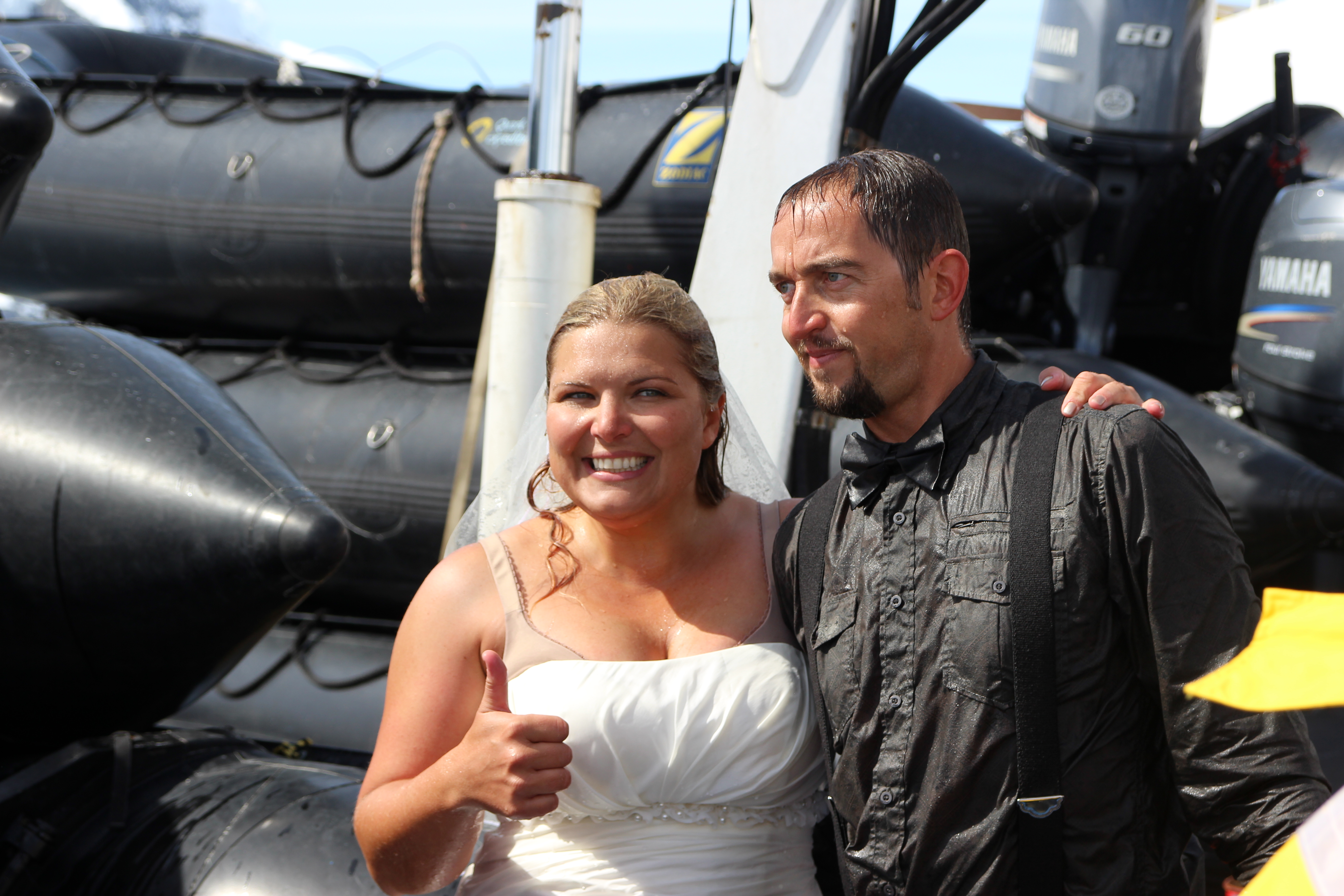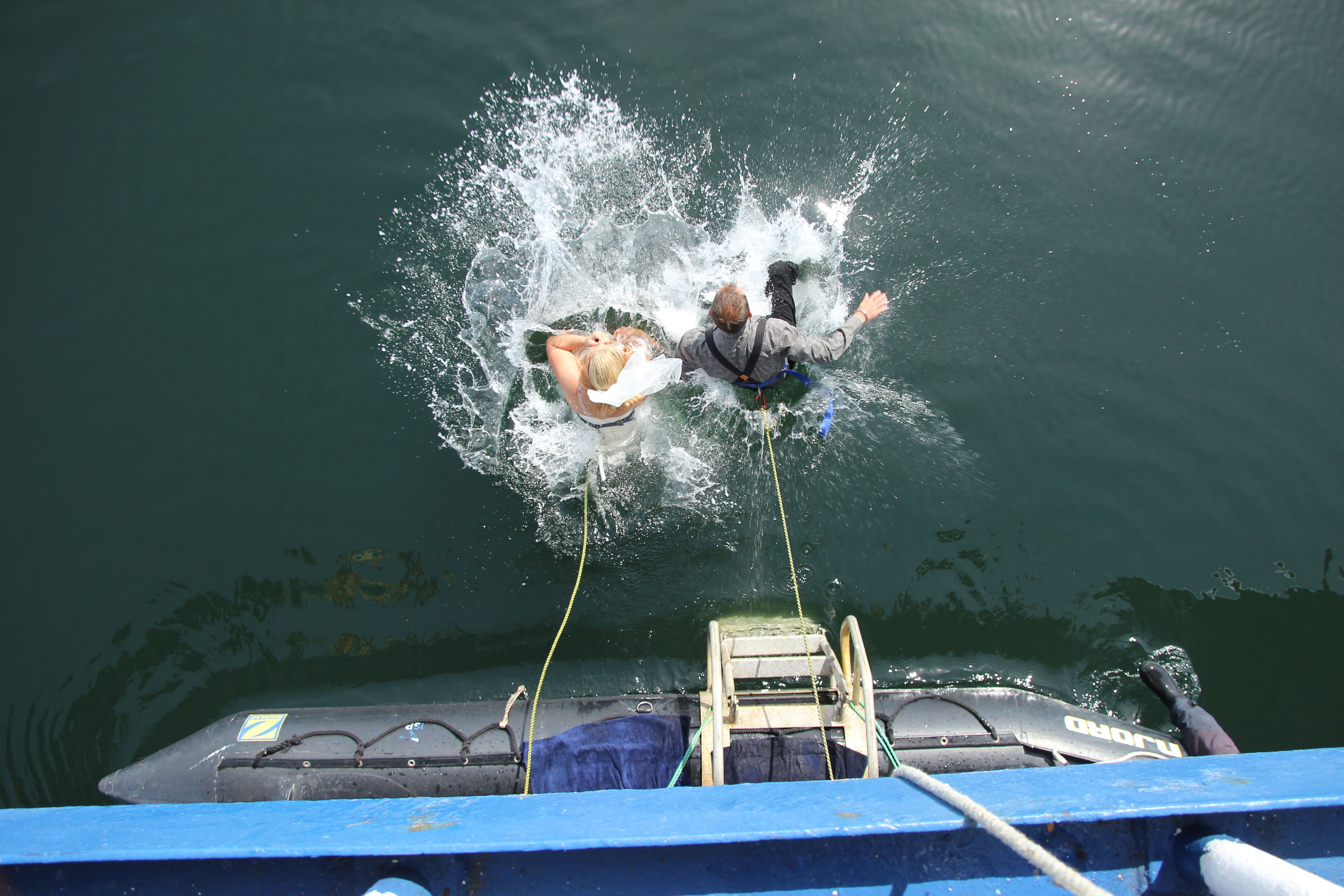 A woman from Vancouver Island got married last month – and took a dive into the ocean – about as far away from her hometown as she could get.
