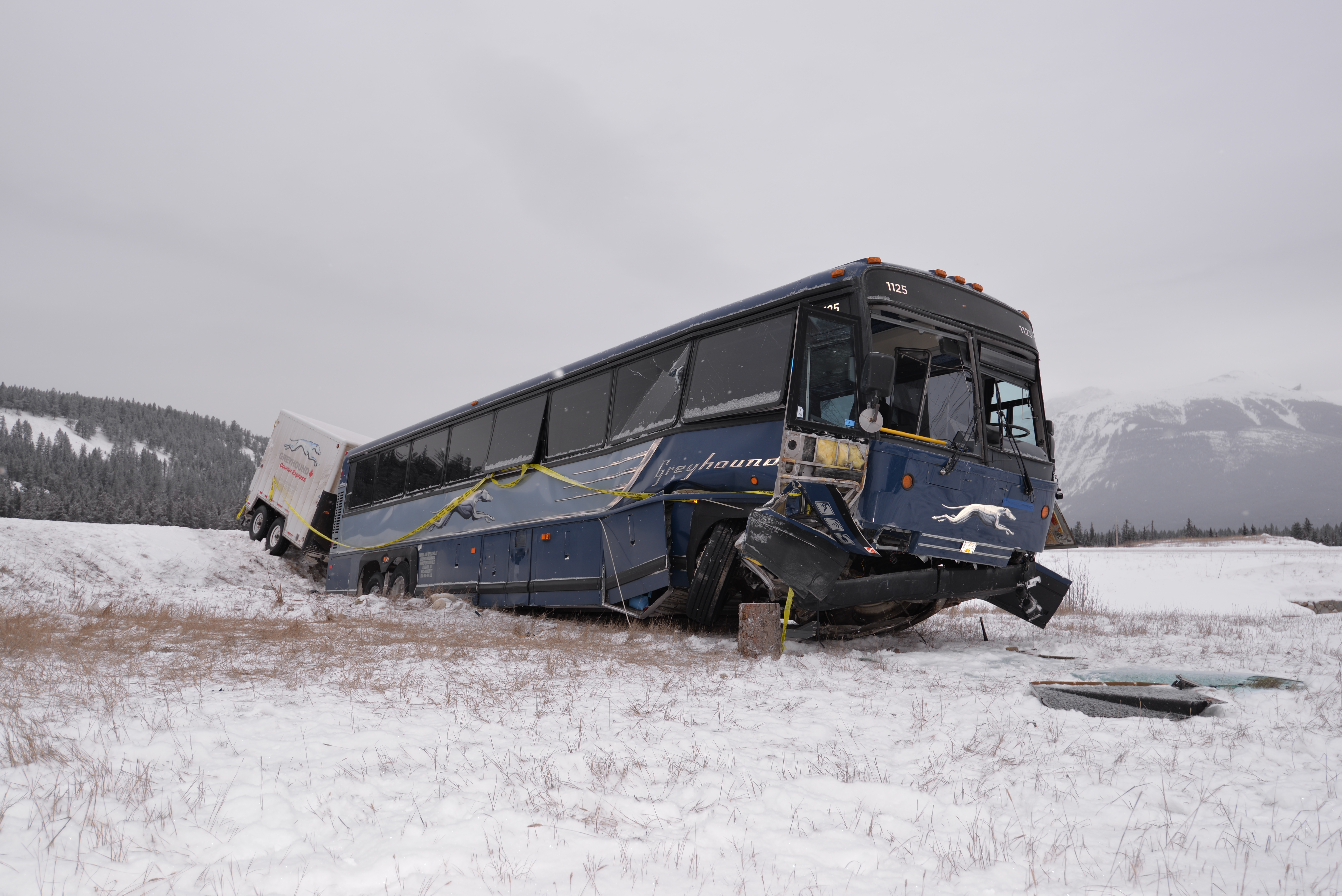 EDMONTON – Greyhound Canada says 21 people suffered mostly minor injuries after one of its buses drove off of a highway on the outskirts of Jasper.