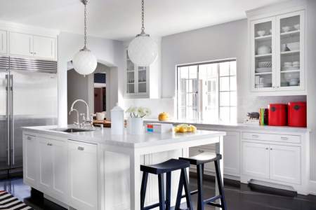 If you’re trying to update your kitchen’s look, Burnham says “there’s been a shift from the once-ubiquitous all-white kitchen toward grey-painted cabinets, and we’ve found ourselves experimenting with colour.” Her office is currently designing one kitchen “that’s predominantly a sophisticated cream colour, and another that will have dark, olive-green cabinets and a textured, black-stone countertop.”