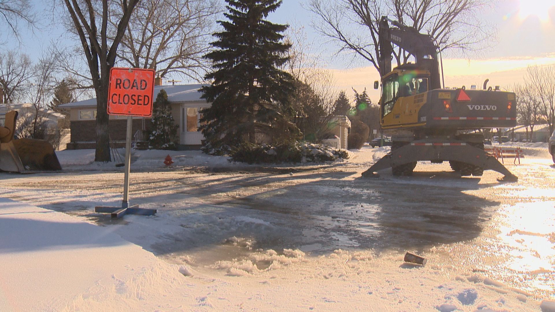 On Tuesday, City of Regina crews were working to repair a ruptured ground pipe on Latta Street in Hillsdale. It was the only active water main break, the city said.