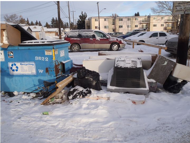 Wallie Brace has lived in the condo building in the area of 57 Street and 133 Avenue for 10 years. He says the dumpsters outside the building are constantly overflowing with garbage that doesn’t belong to building residents. There are often piles of garbage outside the dumpsters, as well.
