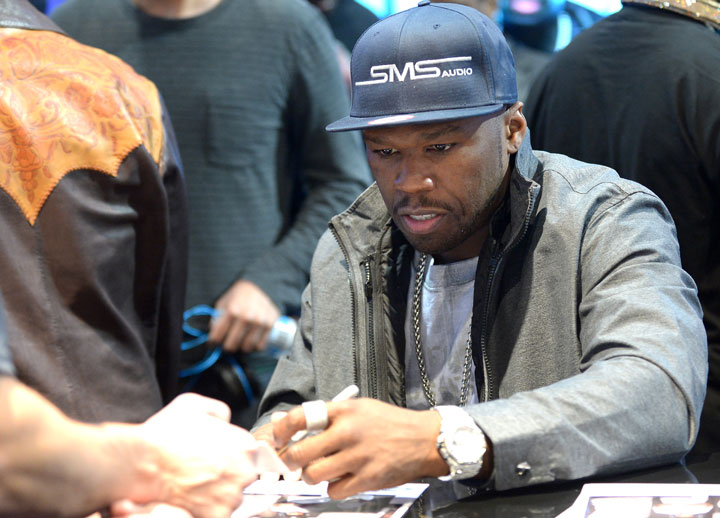 J.T. Ippolito, from Newport Beach, California, works for a company that manages businesses’ online media presence. He also stood in line Wednesday to get a photo with 50 Cent to post on his websites. He says he appreciates the rapper’s backstory and how he has parlayed his career into brand endorsements and businesses like SMS Audio.