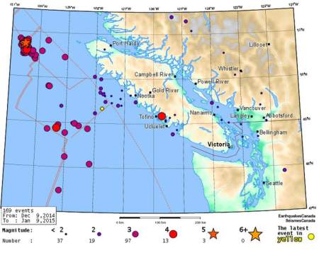 Over the past month there have been 169 earthquakes of magnitude 2.5 or above off the coast of British Columbia. Is this a sign of the “big one?”