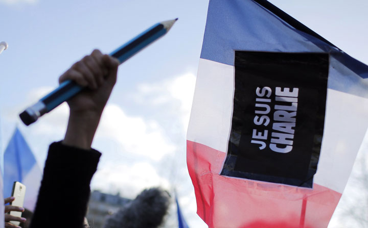 The staff of newspaper Charlie Hebdo, where 10 people were killed last week by gunmen, marched with cartoonist Renald Luzier among them. The newspaper was targeted due to satirical cartoons it published.