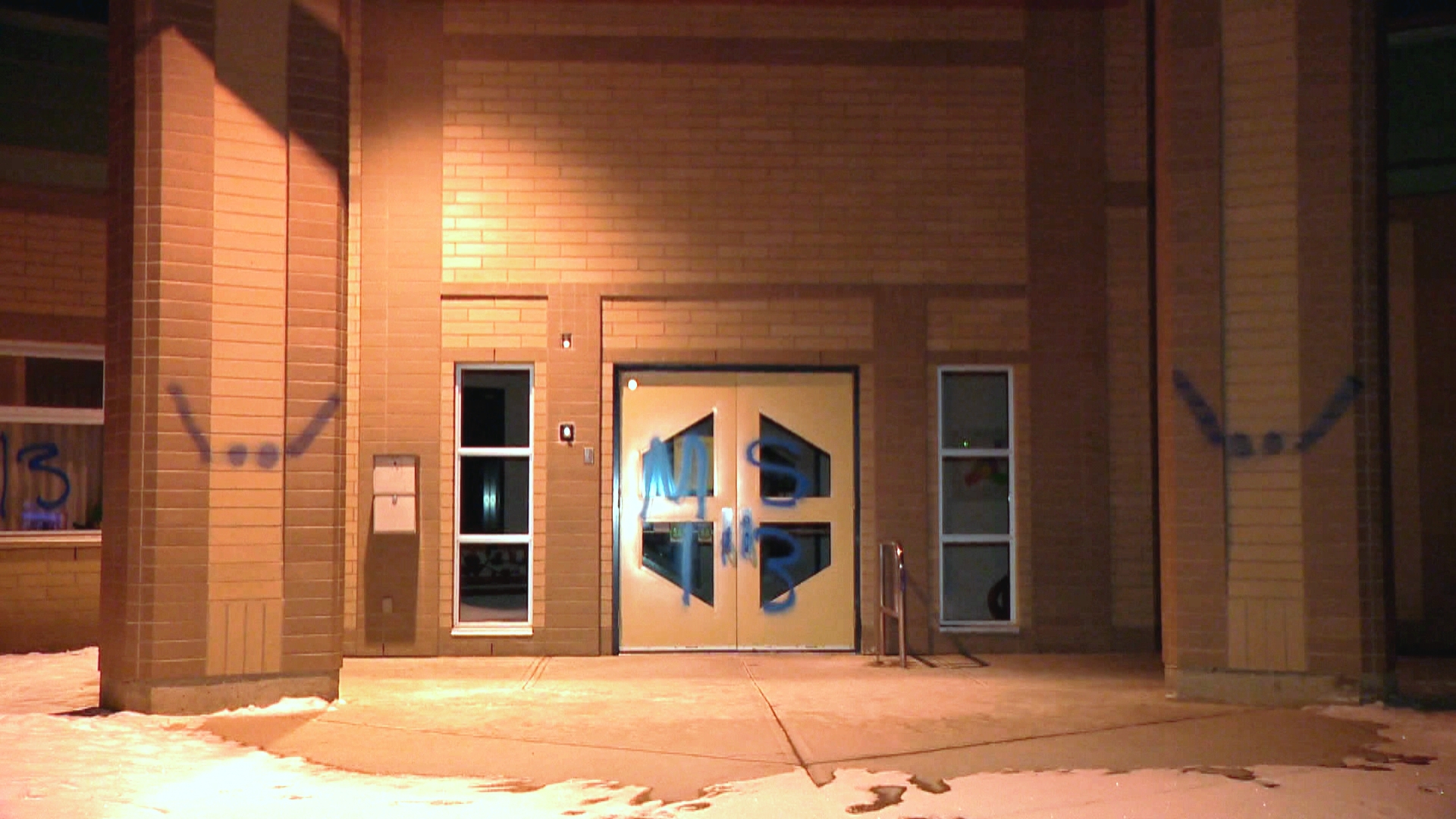 The Calgary Catholic School District says efforts to remove the vandalism are underway.