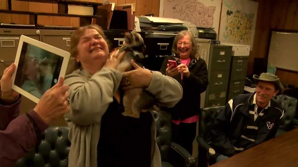 Lorie and Terry were clearly overjoyed to have their little pup back in their arms.