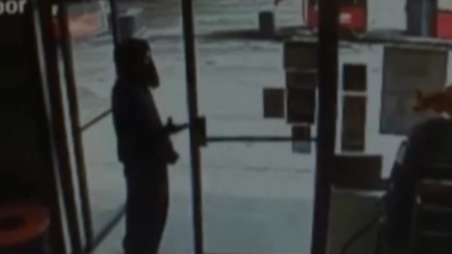 Surveillance cameras captured the darkly humorous moment the would-be robber recognized the store clerk – and aborted his robbery mid-attempt.