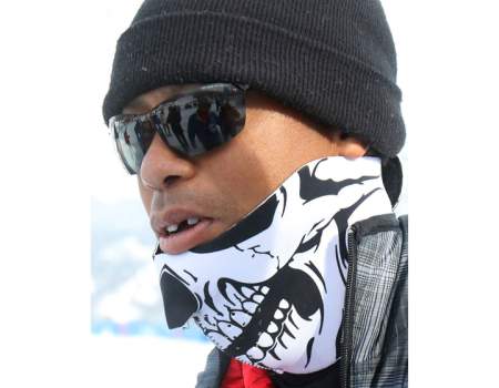 Woods had been wearing a scarf with a skeleton pattern over the lower part of his face, sunglasses and a stocking cap. The photo was taken when the scarf was lowered.