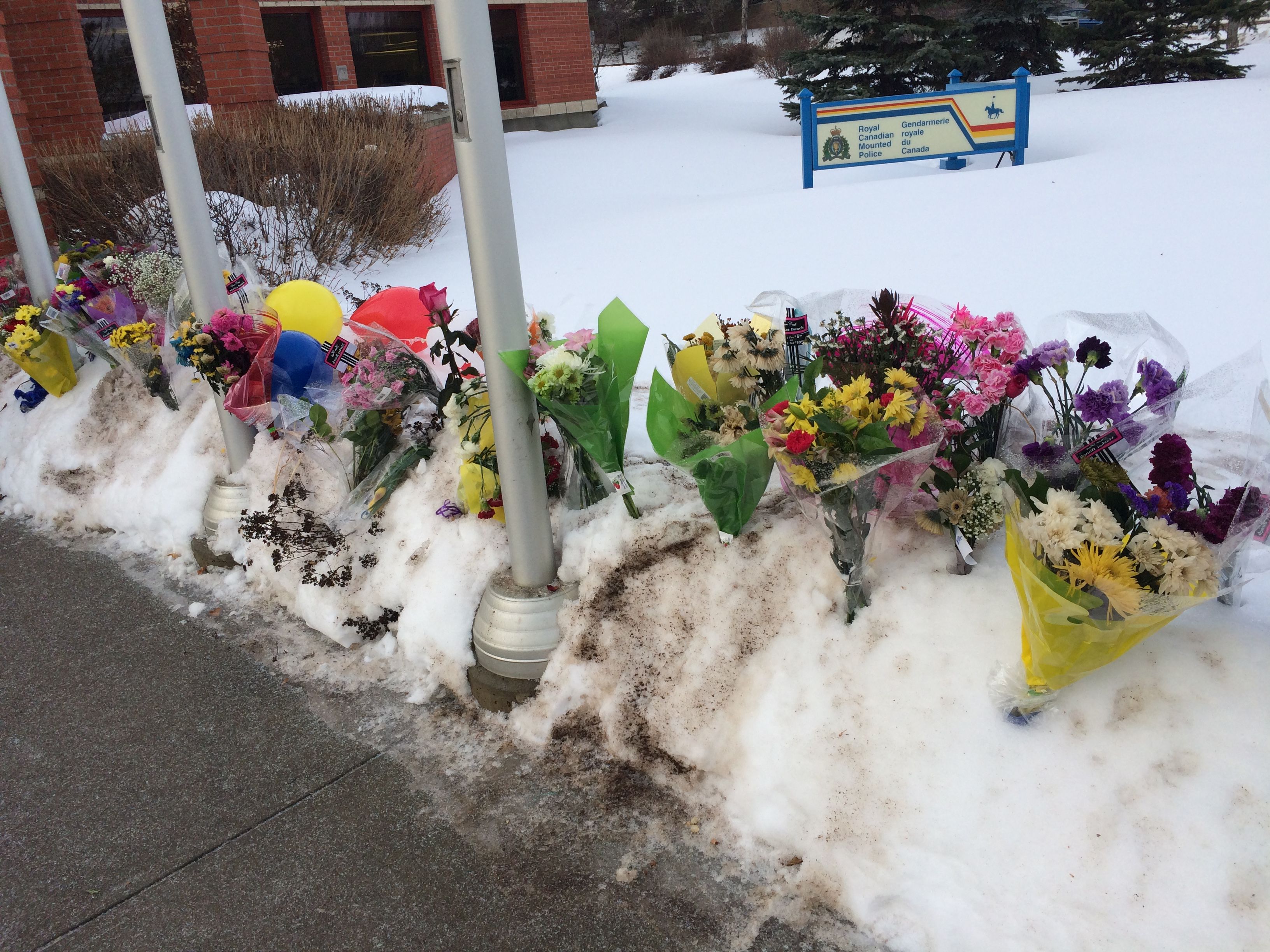 Meanwhile, a memorial for the two officers continues to grow outside the RCMP detachment.