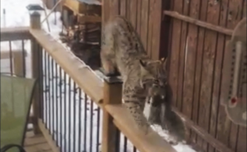 Global News viewer Andrew McCraney spotted a bobcat in his Cedarbrae backyard Tuesday afternoon. As the cat carried a dead squirrel in its mouth along the railing on his deck, McCraney captured the moment on his smartphone.