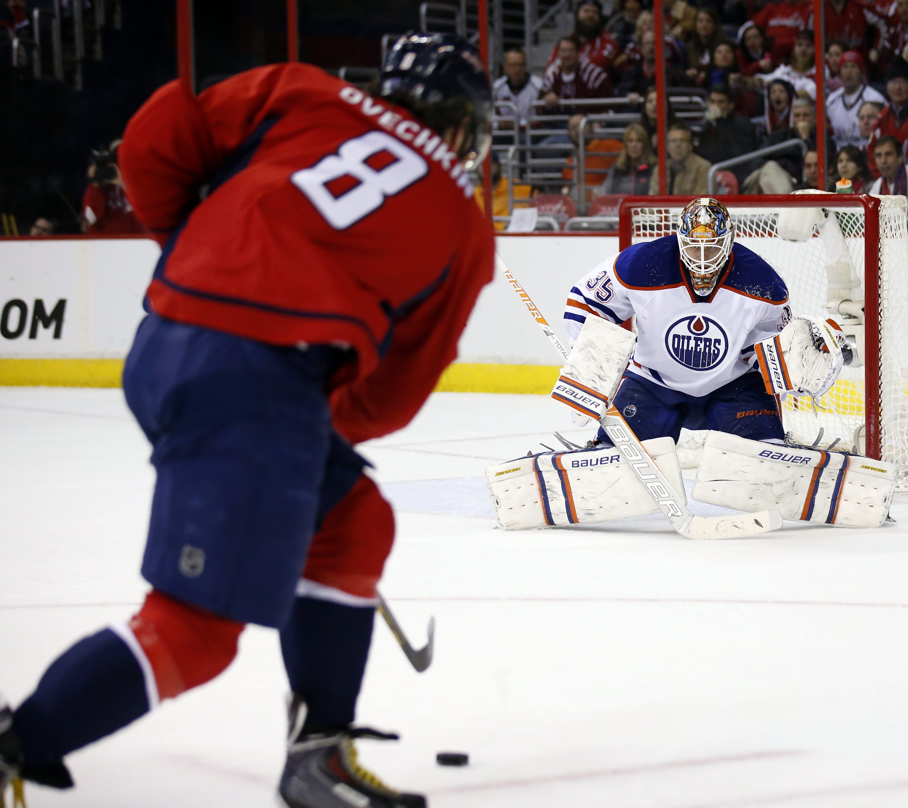 Alex Ovechkin scored twice in the opening 14 minutes for the Capitals, who held leads of 2-0, 3-1 and 4-2 before the Oilers made one final push during the final five minutes of regulation.