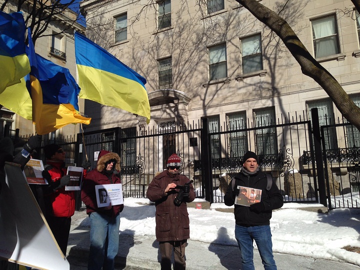 MONTREAL — A group of protesters rallied in front of the Russian consulate on Monday at noon in Montreal.