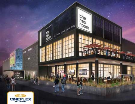 The first Rec Room in Canada will open late this year adjacent to the existing Cineplex theatre at the South Edmonton Common shopping centre.