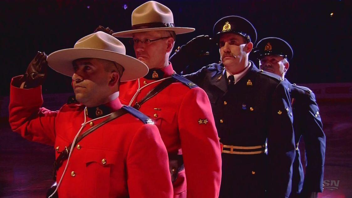 “A real life reminder of what the men and women of our local police forces and the RCMP do to protect us,” Sportsnet host Gene Principe said before the Oilers faced off against the Minnesota Wild.