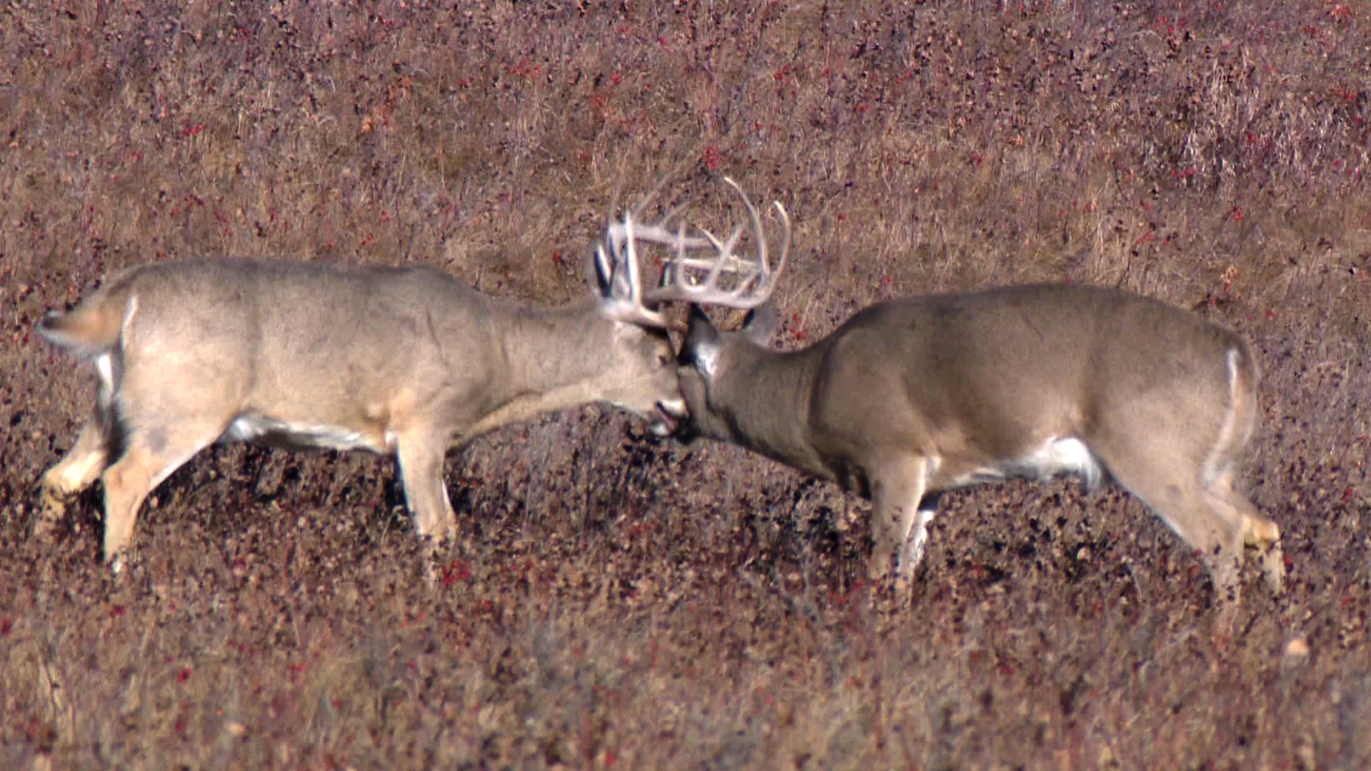 ABOVE: For several testosterone fueled hours, two white-tailed bucks went head-to-head, locking horns in a battle for male supremacy. David Boushy reports.