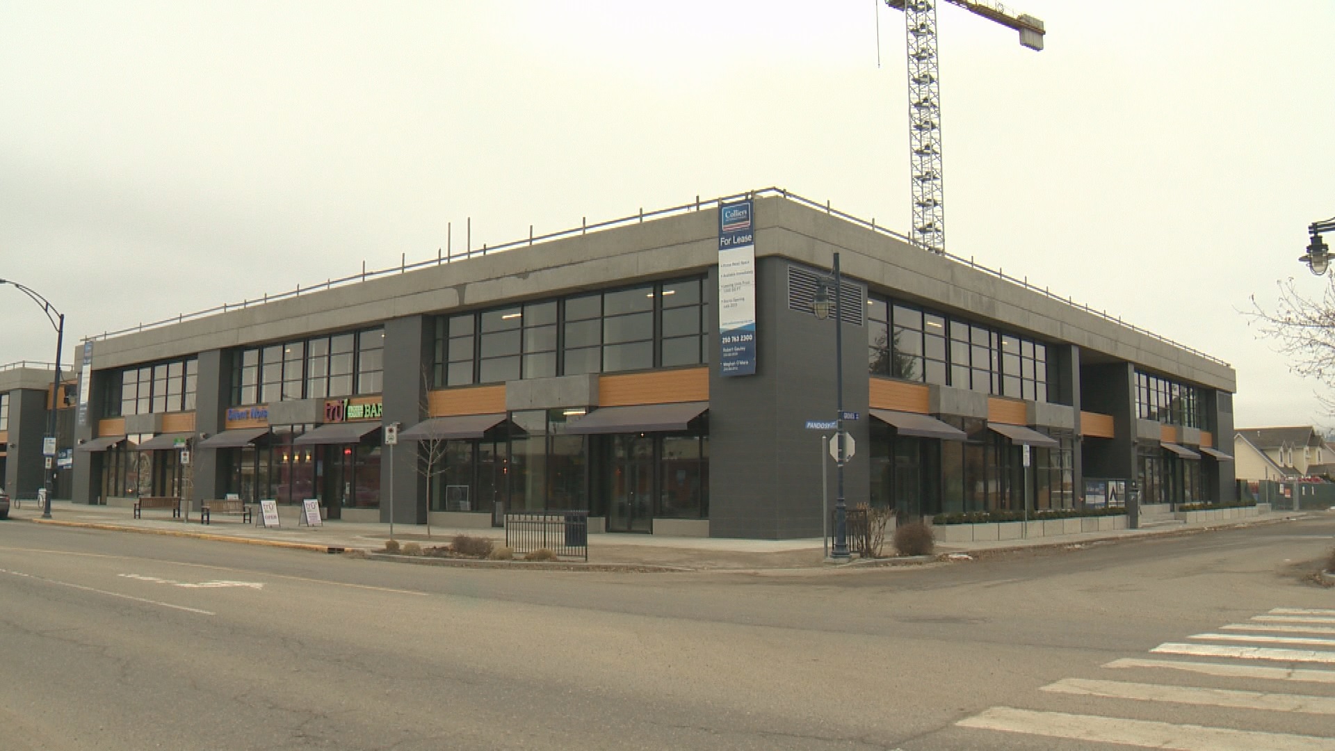 The initial plan was to also build 100 condominiums and town houses on the Pandosy Street site.