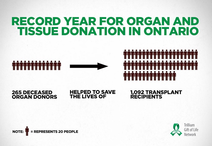 TORONTO – A record number of lives in Ontario were saved through organ donation in 2014.