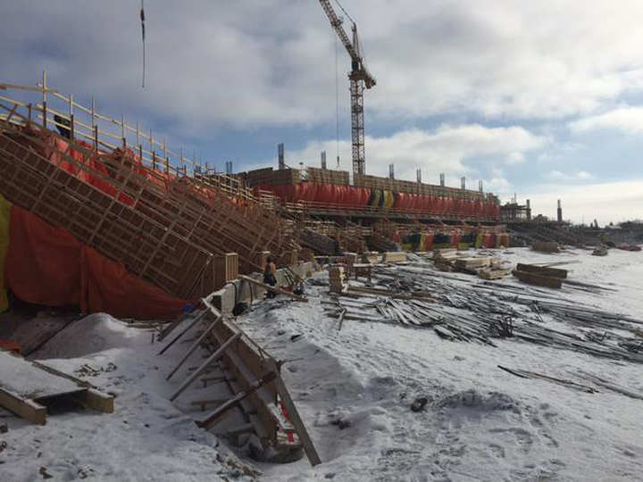 The new stadium in Regina has had almost 12,000 cubic metres of concrete poured and more than 1,200 tonnes of reinforcing steel has been used. Currently 190 people are working on the Riders’ new home.