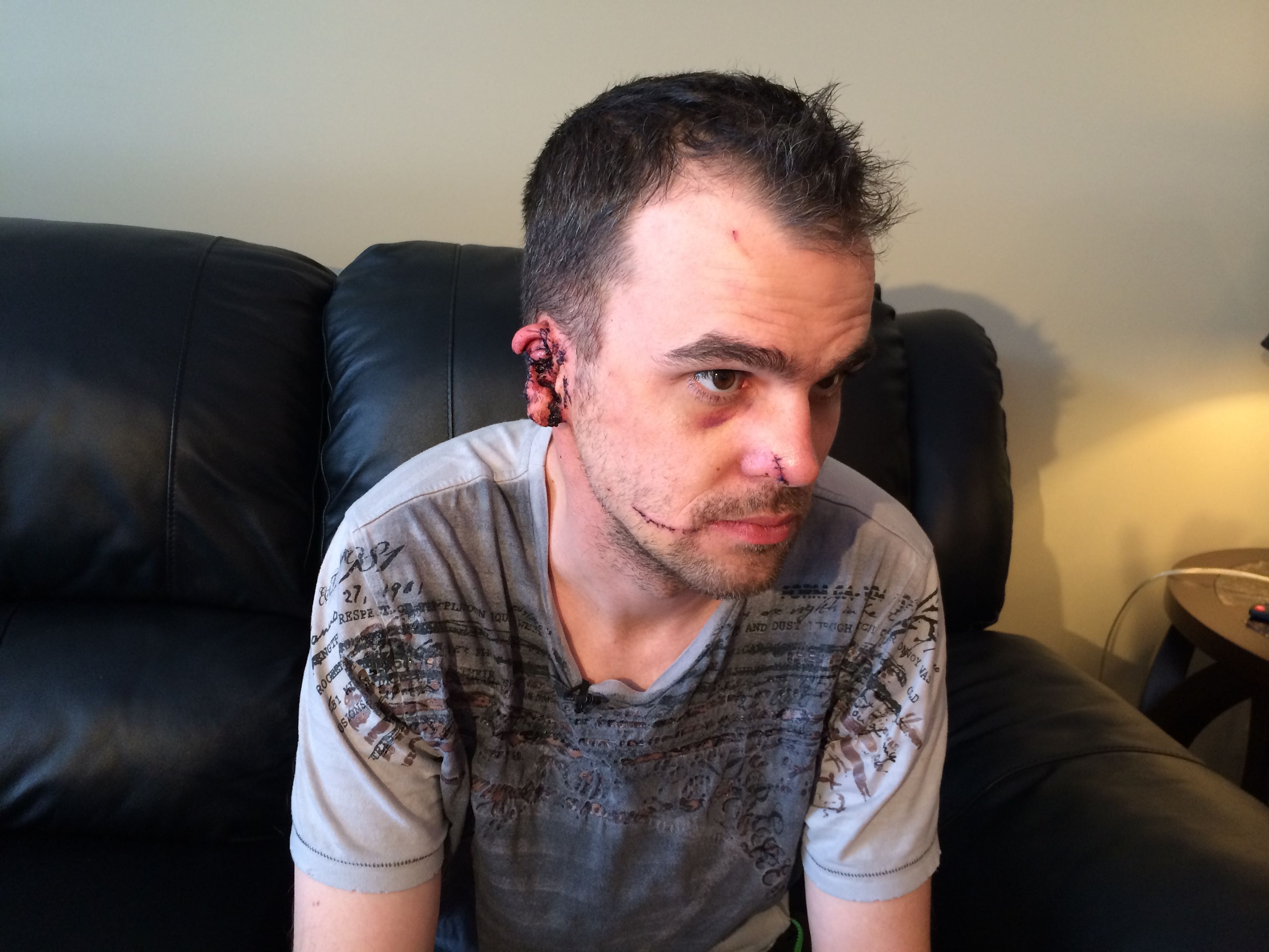 EDMONTON — He received 30 stitches, gashes to his face and neck and part of his ear was amputated, but Stephen Campbell still considers himself lucky.
