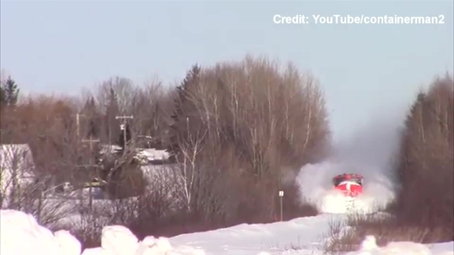 Over 100 centimetres of snow has covered New Brunswick over the past two weeks, and Gordon estimated the snow was several feet high as the train was blowing through.