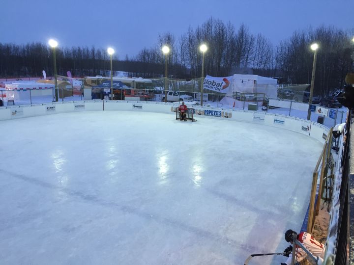 Non-stop hockey will be played at the rink at Saiker’s Acres, east of Edmonton, until Feb. 16.