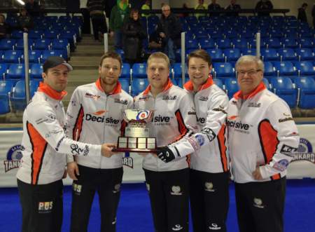 Steve Laycock, Kirk Muyres, Colton Flasch, Dallan Muyres and coach Lyle Muyres will now represent Saskatchewan at the 2015 Tim Hortons Brier which starts Feb. 28 in Calgary.