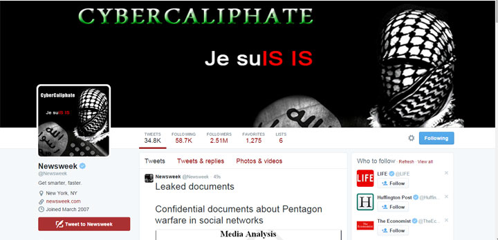 TORONTO – U.S. magazine Newsweek‘s Twitter account has been hacked by apparent Islamic State supporters Tuesday morning.