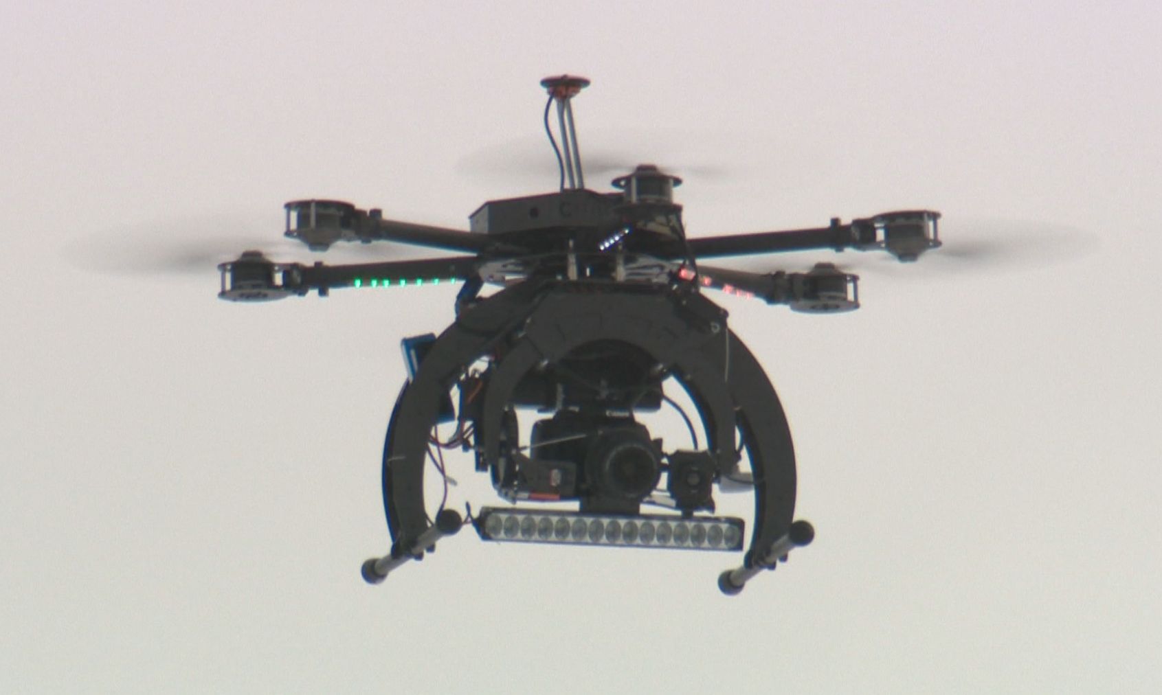The $27,000 drone is much like a mini helicopter. It contains a flight data recorder, a powerful search light, thermal imaging technology and a remote-controlled digital SLR camera.