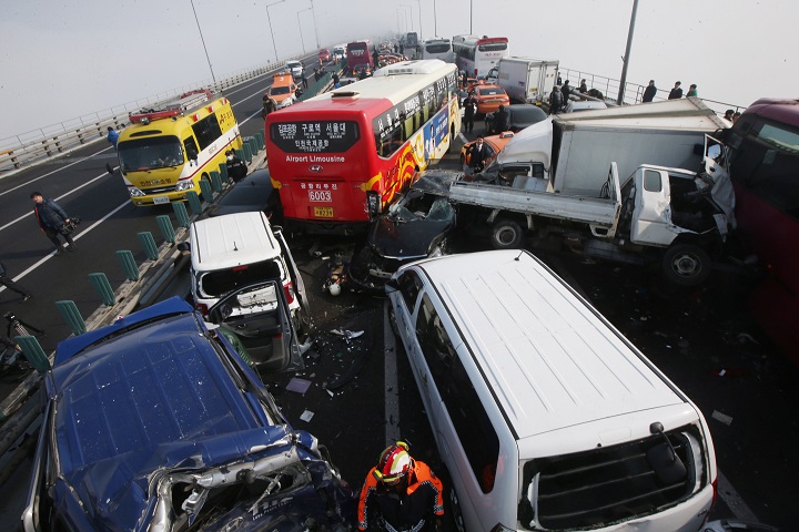 In 2006, a 29-car pileup in foggy weather on another cross-sea bridge in South Korea left 11 people dead and more than 50 injured.