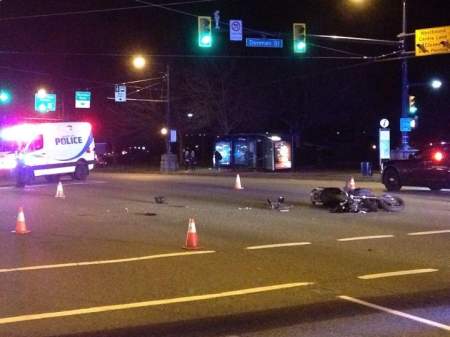 One person is in serious condition following a crash involving a motorcycle in downtown Vancouver last night.