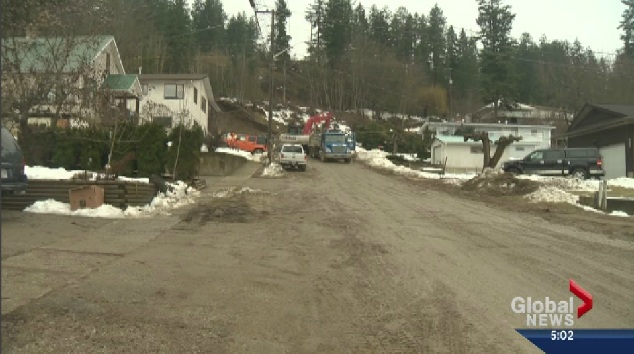 ENDERBY – Crews in Enderby are working to make sure a slope at the top of Granville Avenue doesn’t slide any further. On Monday, part of the bank slumped, releasing mud down the hill and pushing a parked jeep into a post which was supporting a garage.